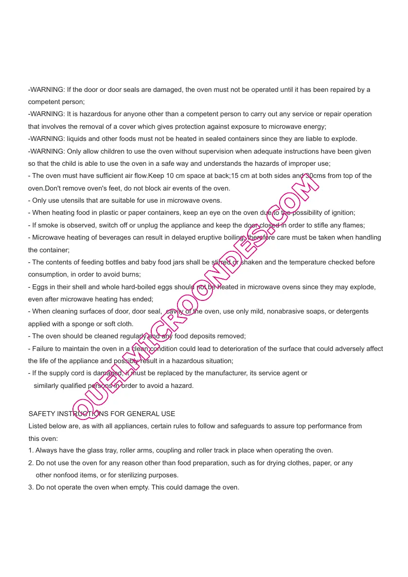 4. Do not use the oven cavity for any type of storage,such a papers, cookbooks, etc.