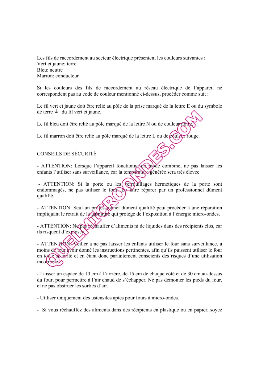 - ATTENTION: Lorsque l’appareil fonctionne en mode combiné, ne pas laisser les