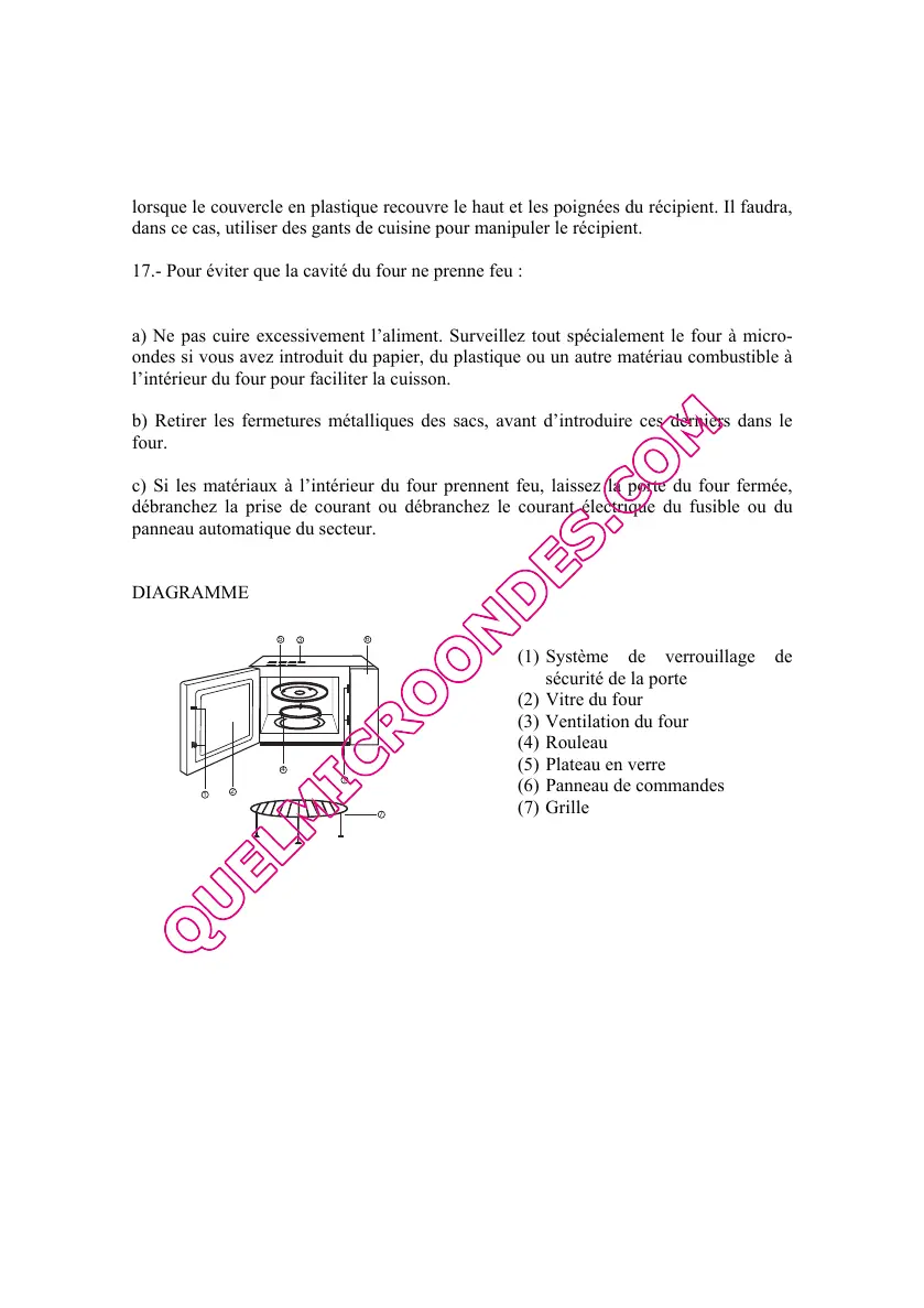 17.- Pour éviter que la cavité du four ne prenne feu :