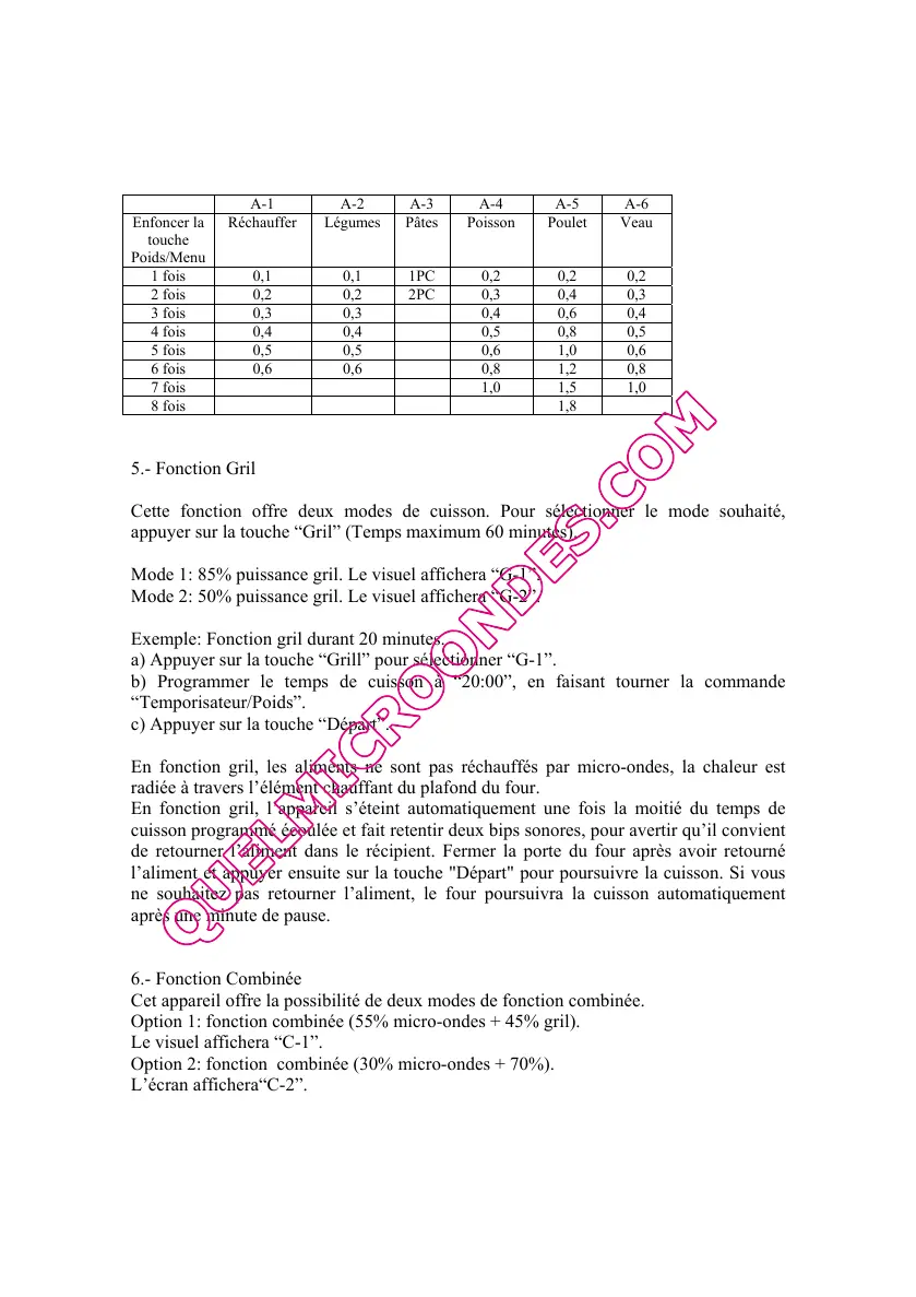a) Appuyer sur la touche “Grill” pour sélectionner “G-1”.