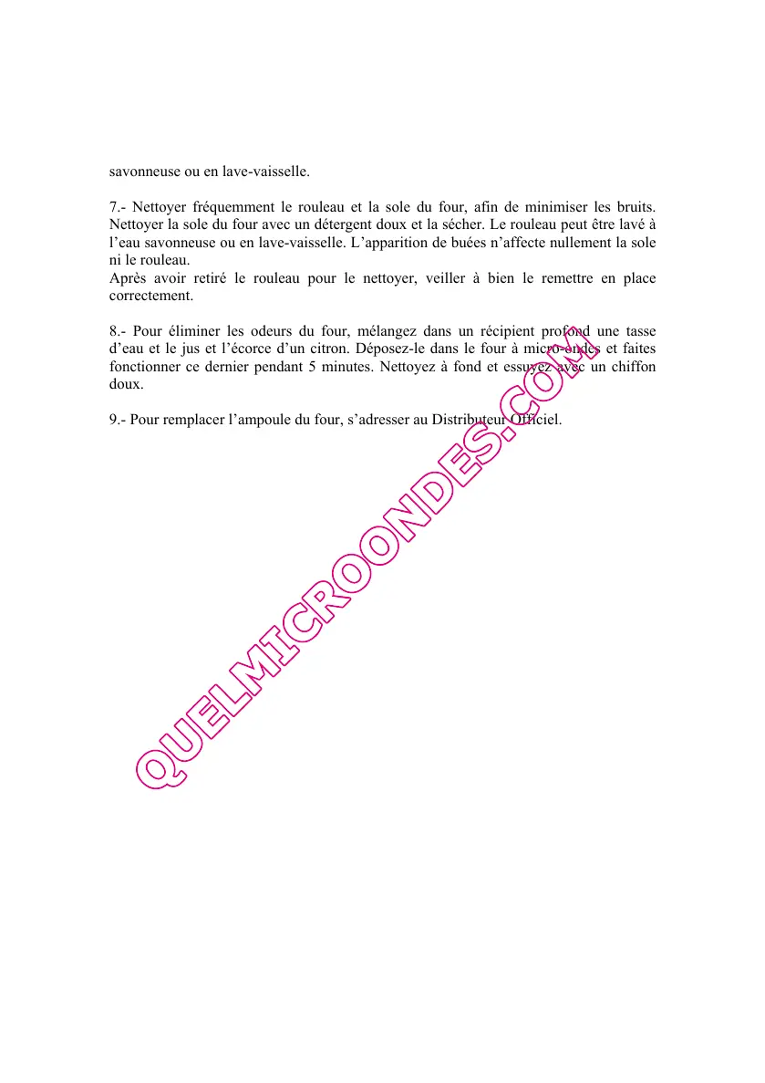 7.- Nettoyer fréquemment le rouleau et la sole du four, afin de minimiser les bruits.