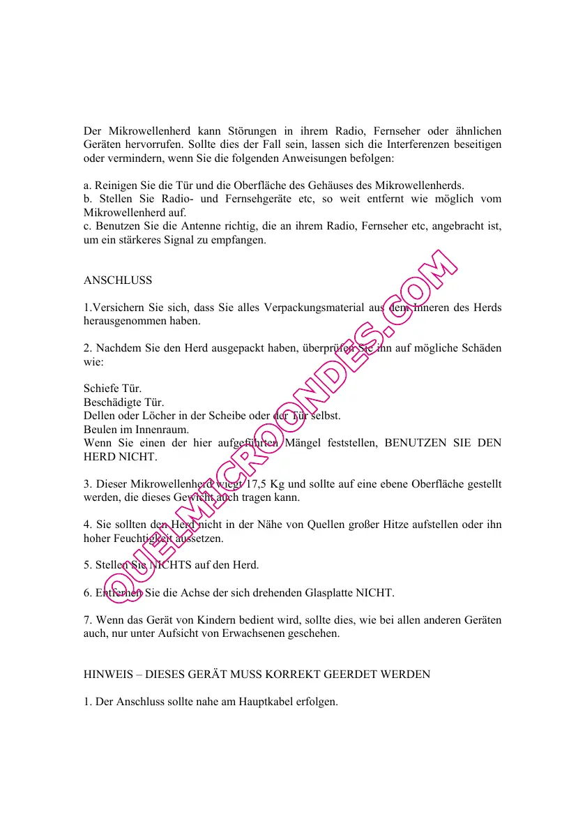 Der Mikrowellenherd kann Störungen in ihrem Radio, Fernseher oder ähnlichen