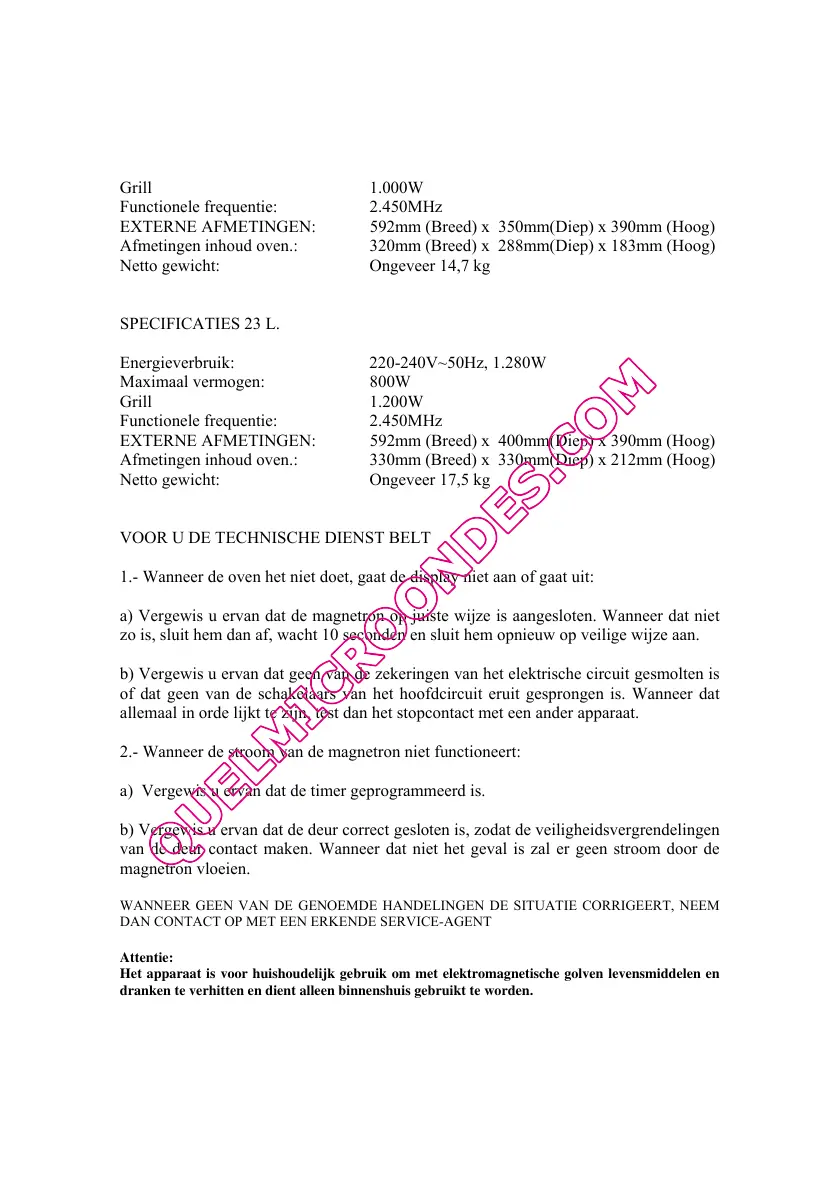 Het apparaat is voor huishoudelijk gebruik om met elektromagnetische golven levensmiddelen en