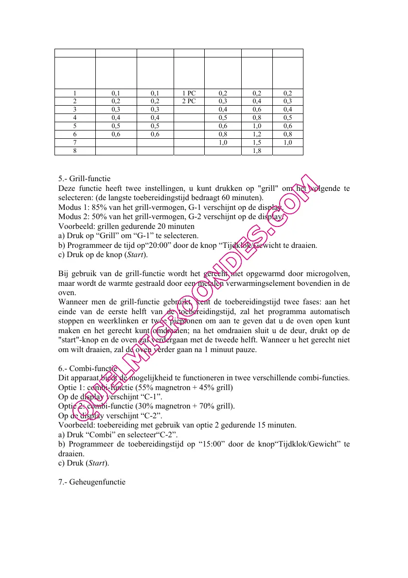 Optie 2: combi-functie (30% magnetron + 70% grill).