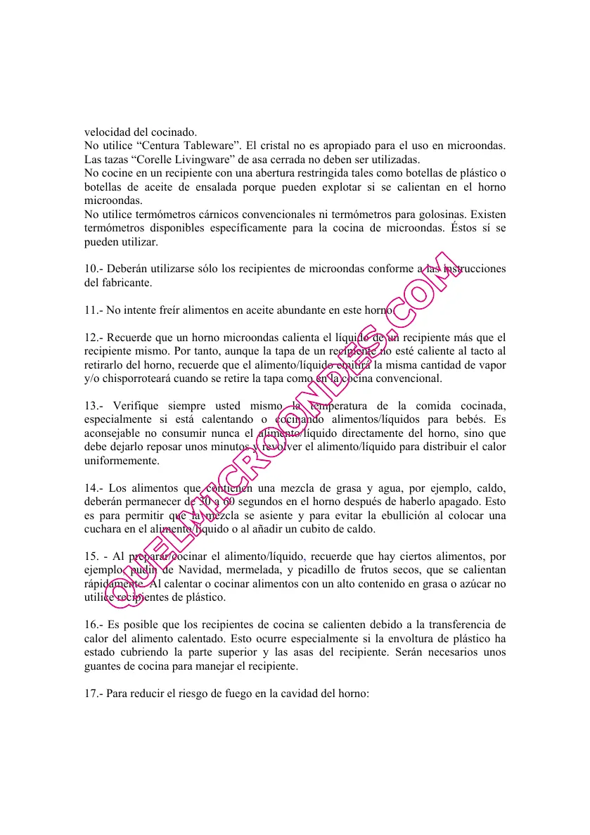 10.- Deberán utilizarse sólo los recipientes de microondas conforme a las instrucciones