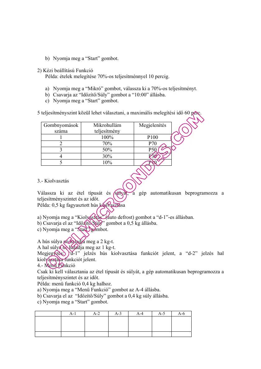 a) Nyomja meg a “Mikró” gombot, válassza ki a 70%-os teljesítményt.
