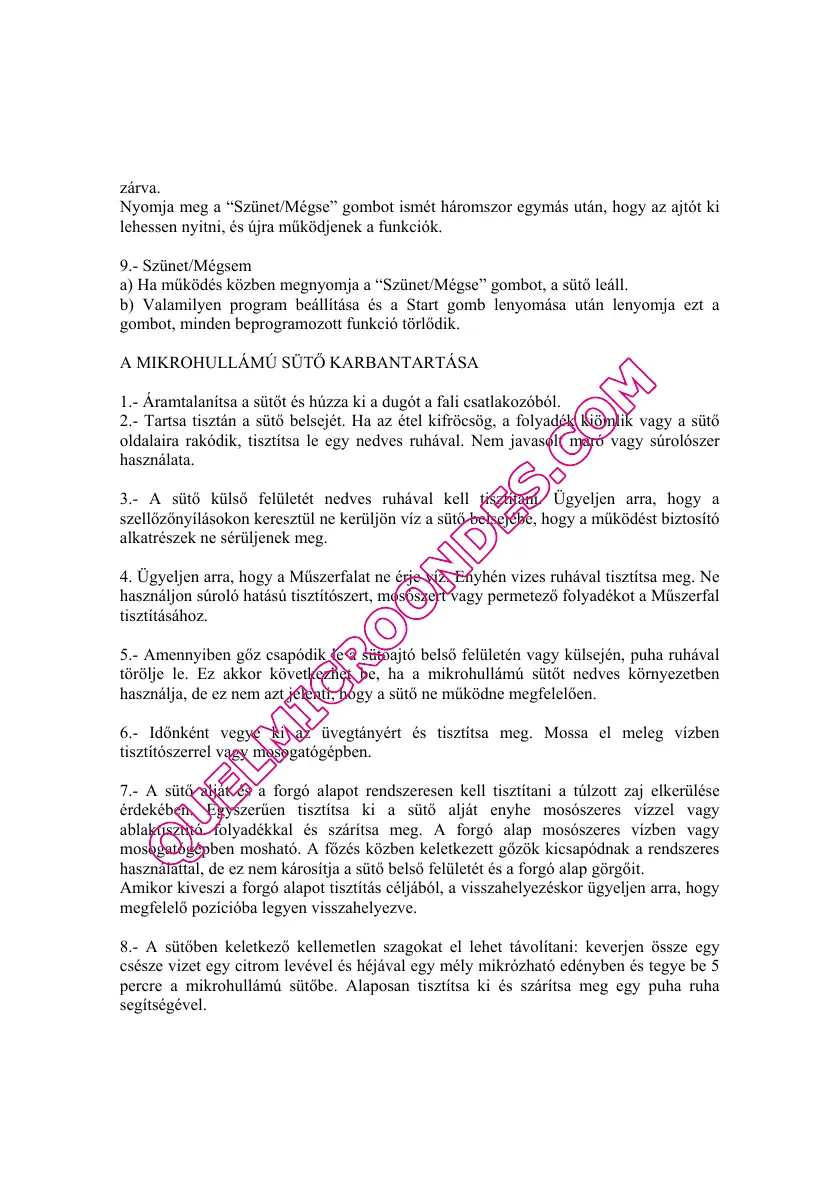 7.- A sütő alját és a forgó alapot rendszeresen kell tisztítani a túlzott zaj elkerülése