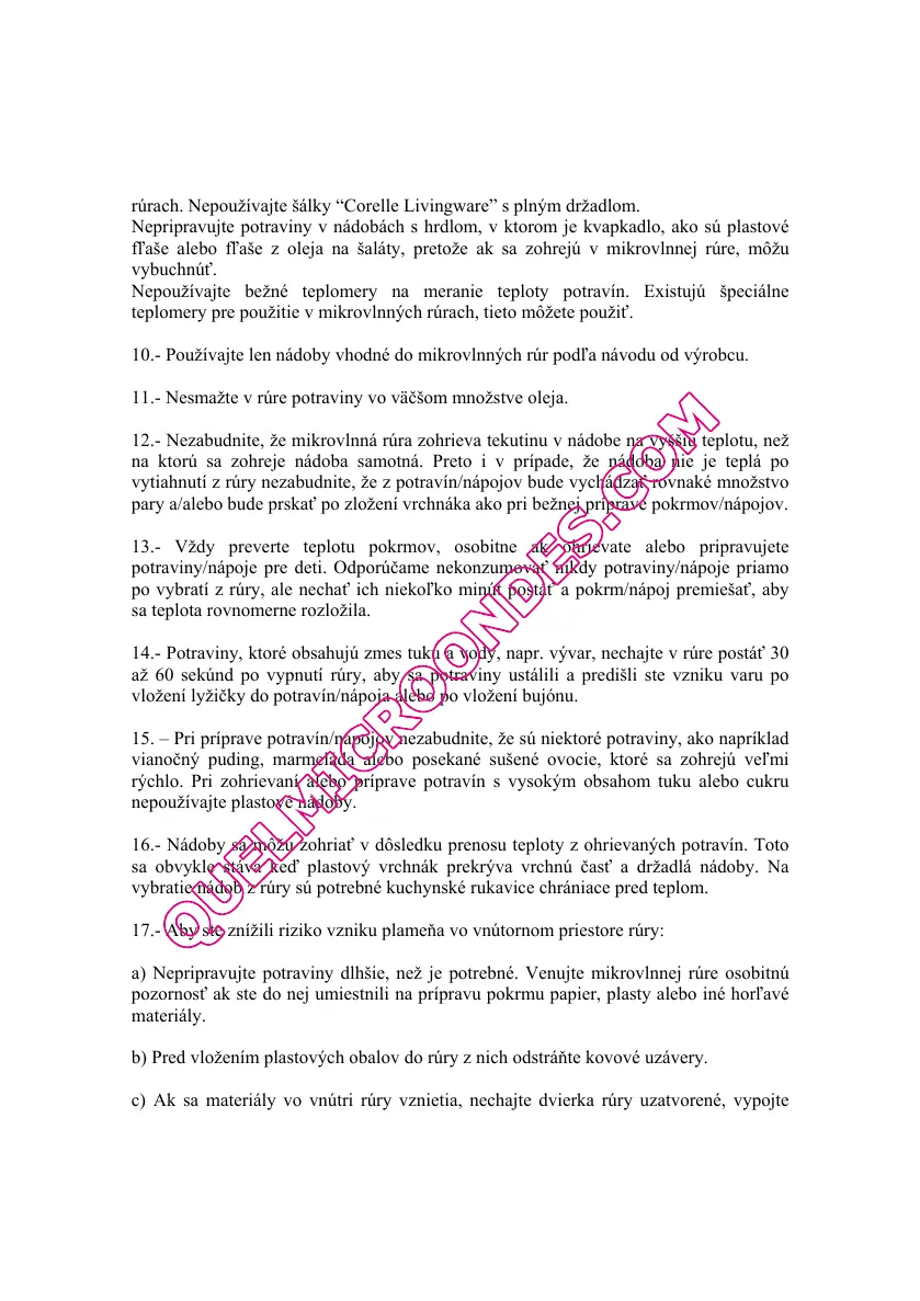 10.- Používajte len nádoby vhodné do mikrovlnných rúr podľa návodu od výrobcu.