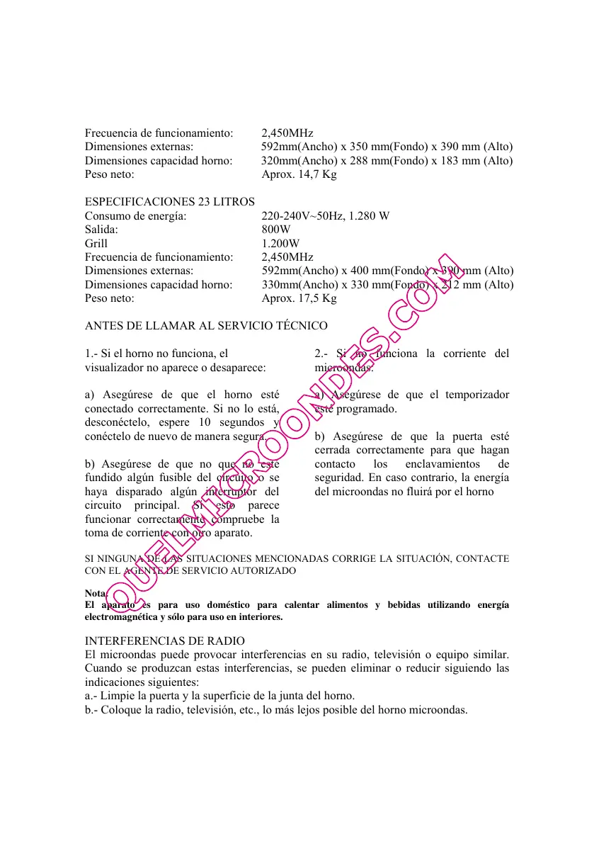 El microondas puede provocar interferencias en su radio, televisión o equipo similar.