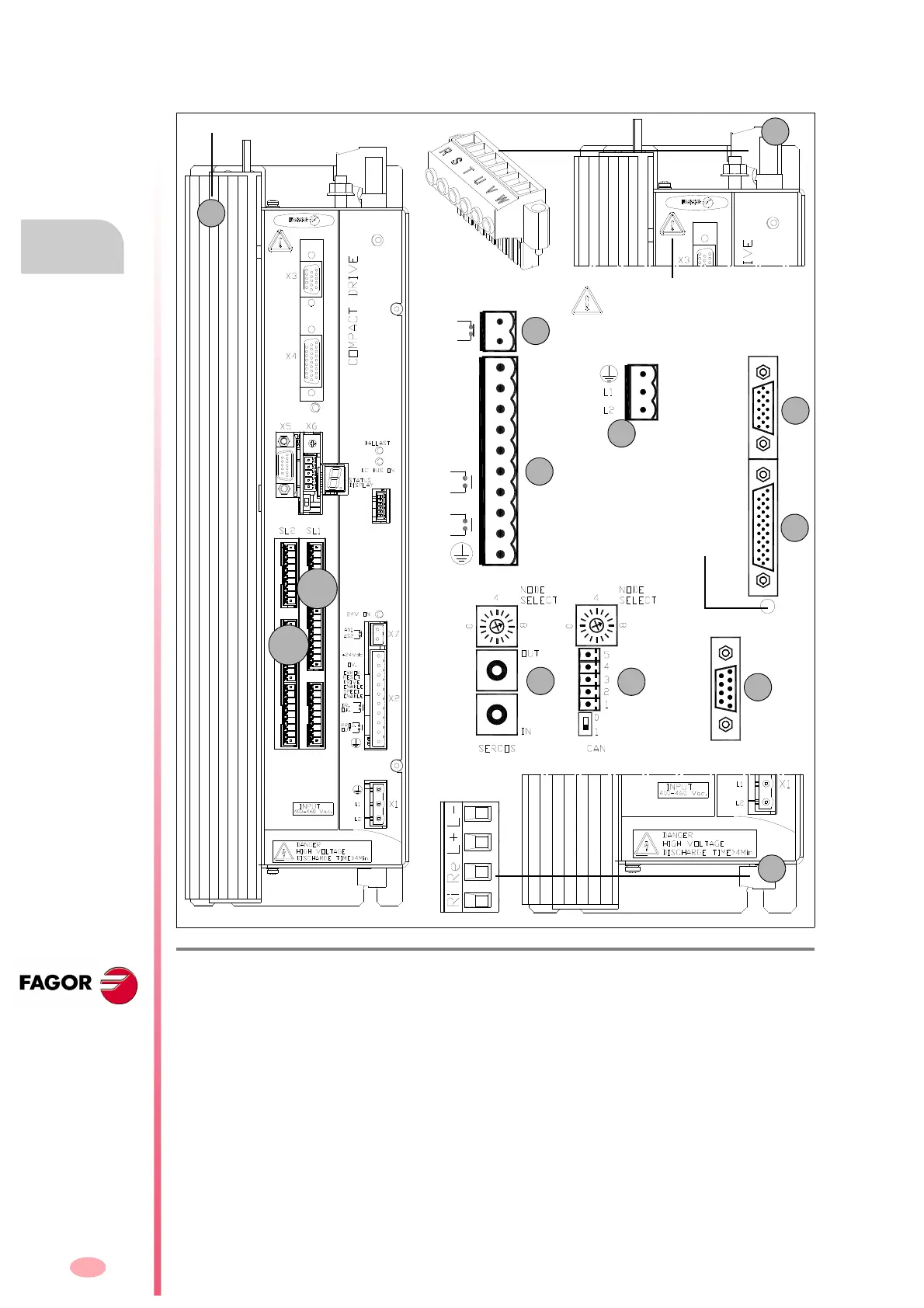 2. Connector for the external Ballast resistor (Re) and for accessing the power bus (L+, L-).