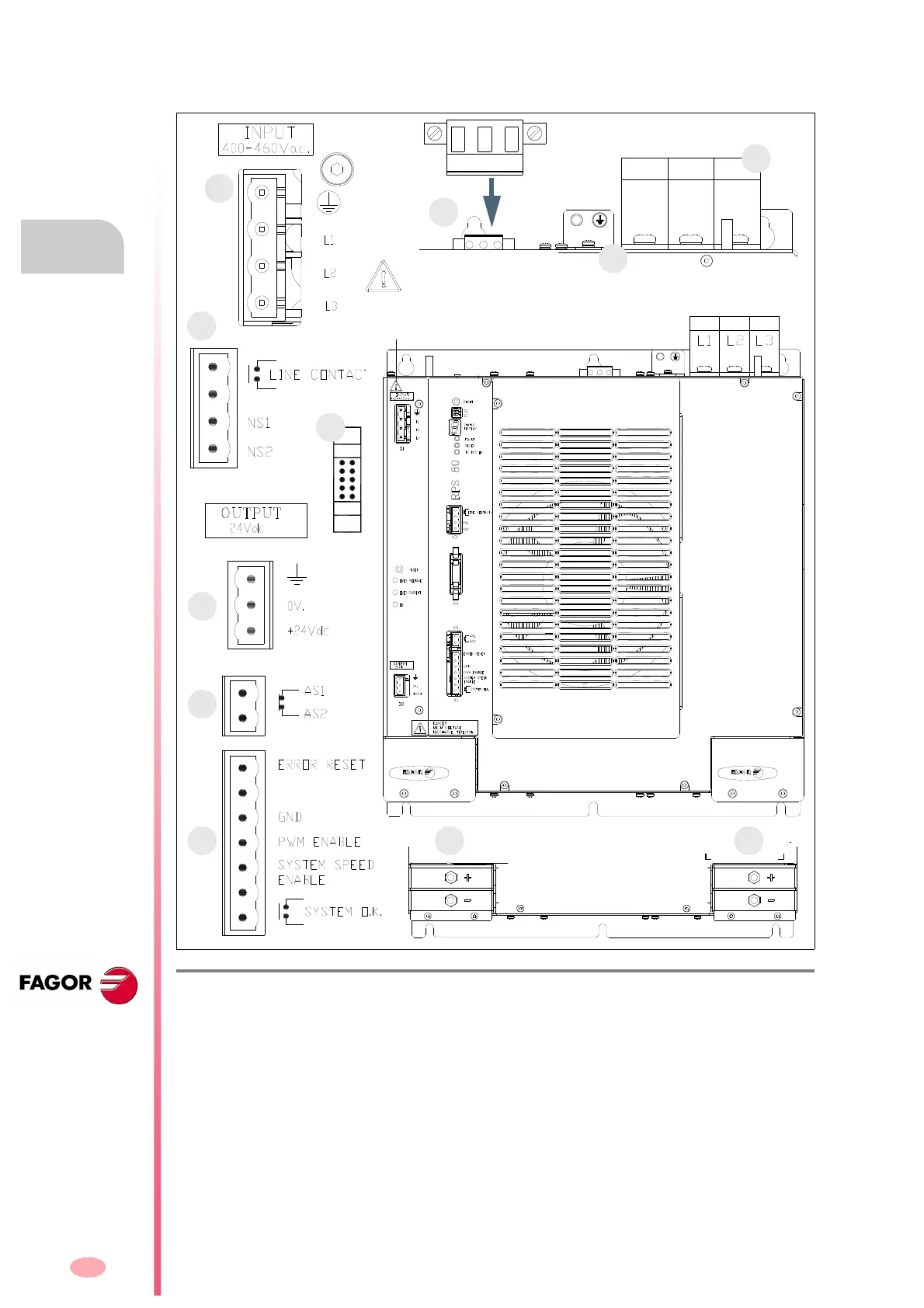 X1. Connector of the integrated auxiliary three-phase power supply.