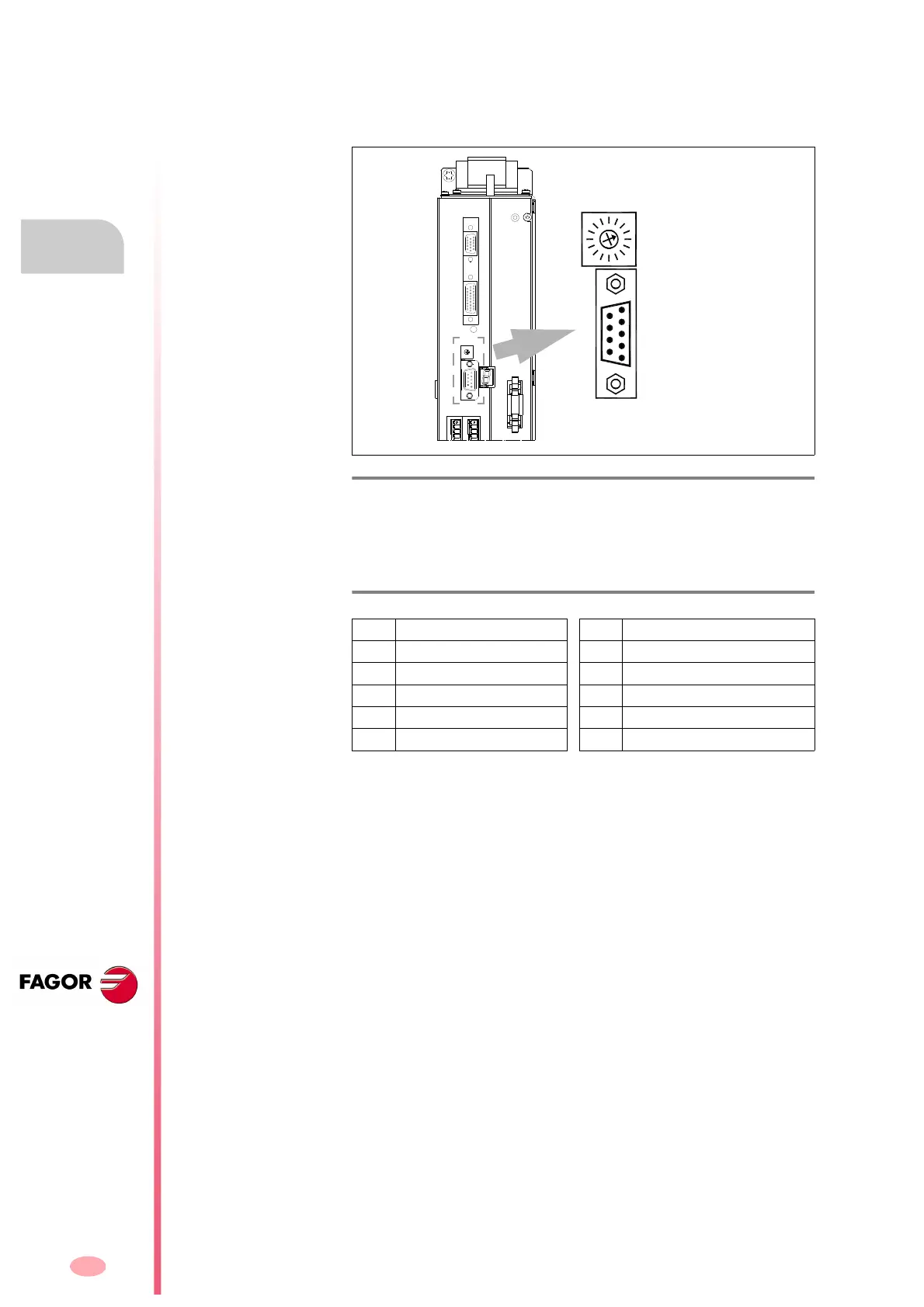 The RS-232/422 connection of the drive (only MMC or CMC models) is