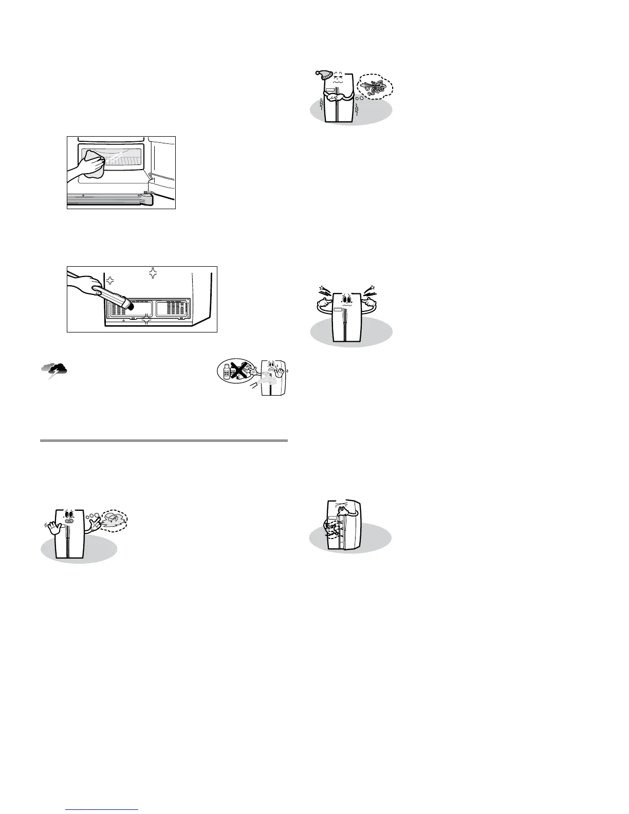 ՃBe sure to clean the shelves and door pockets consistently.