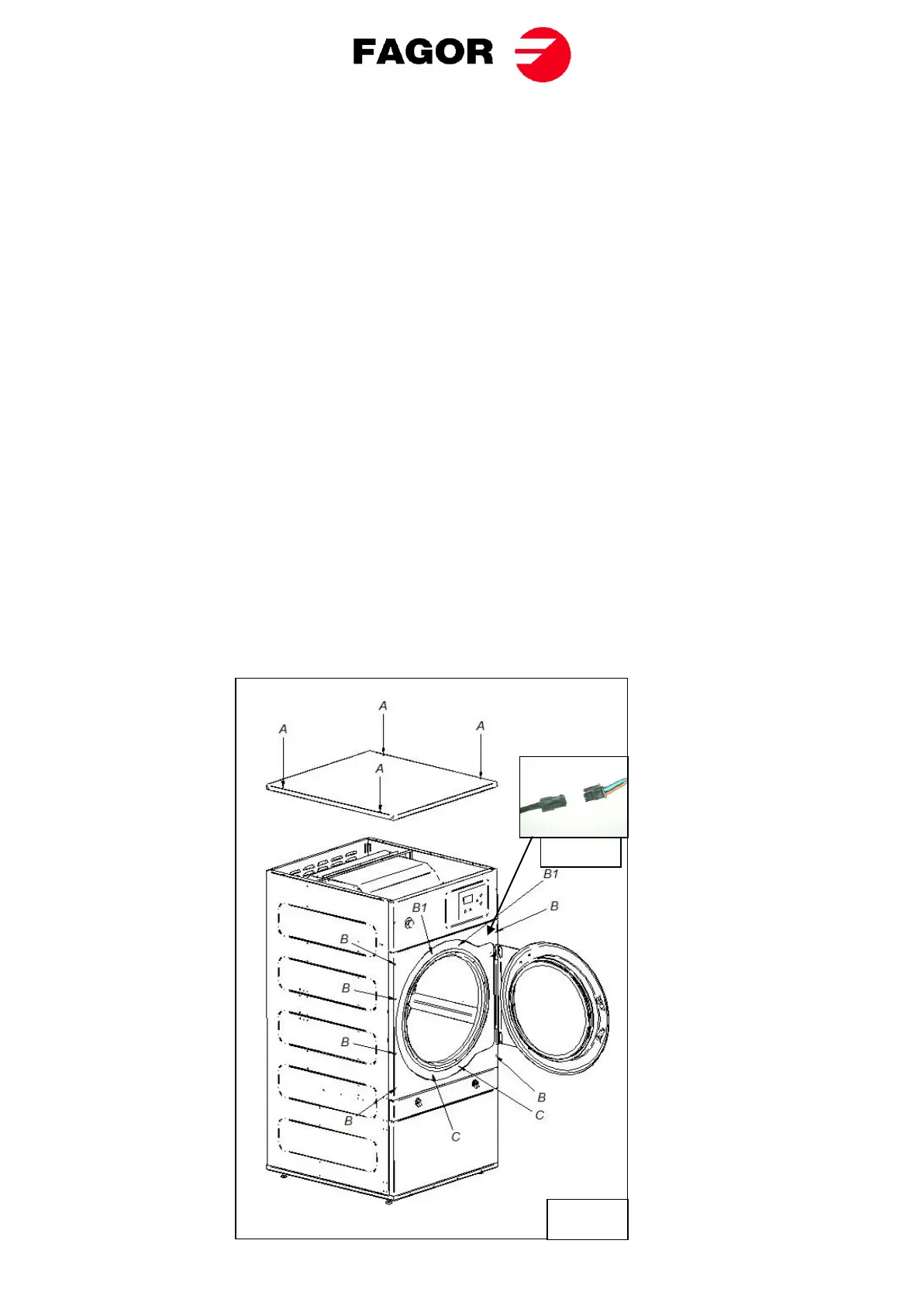 3. Отсоединить переднюю крышку путем ослабления 6 болтов "В" и открыть дверцу для получения доступа к