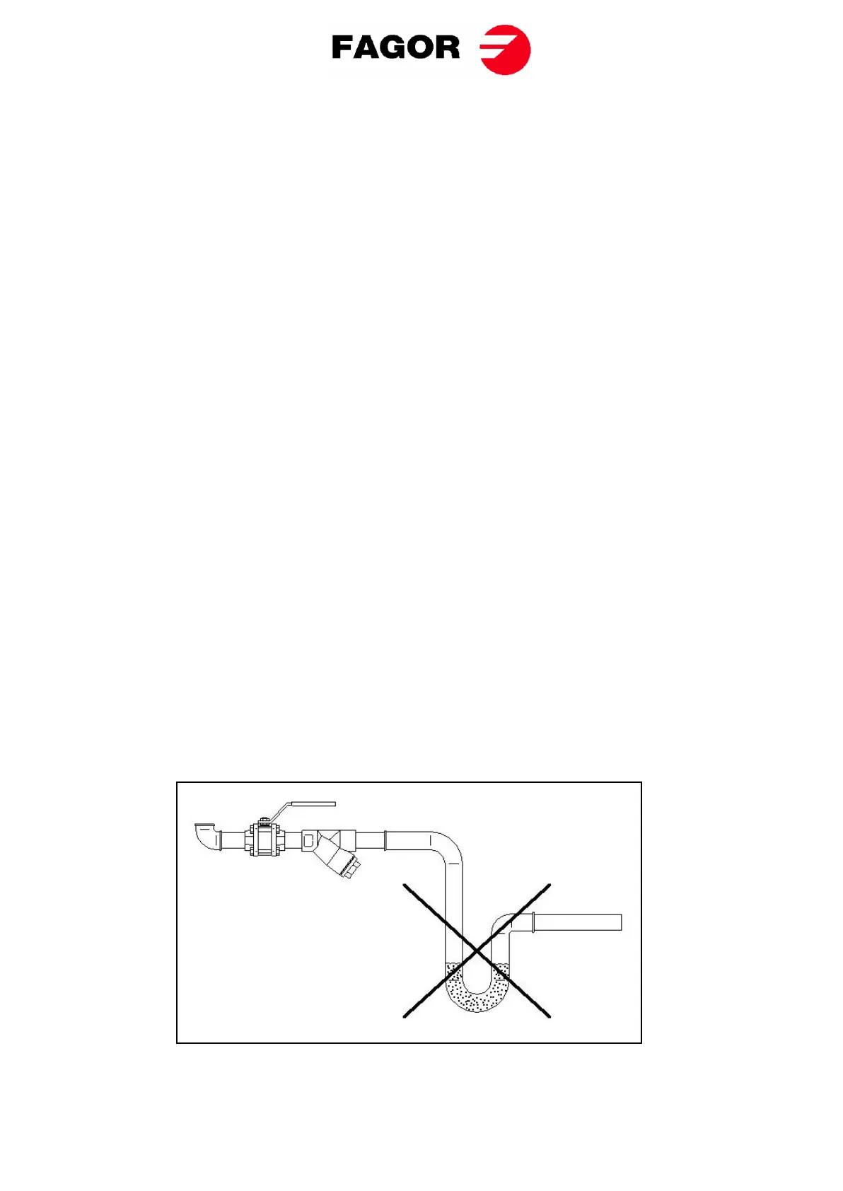 La tubería de derivación a la máquina con una inclinación negativa y sin ningún