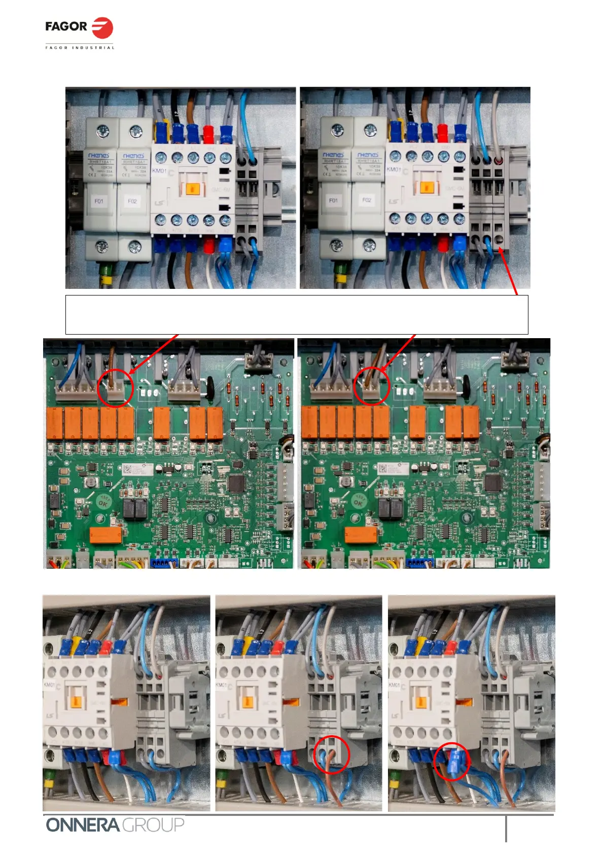The terminal strip is connected to the right of the fan contactor, together with the other strips already