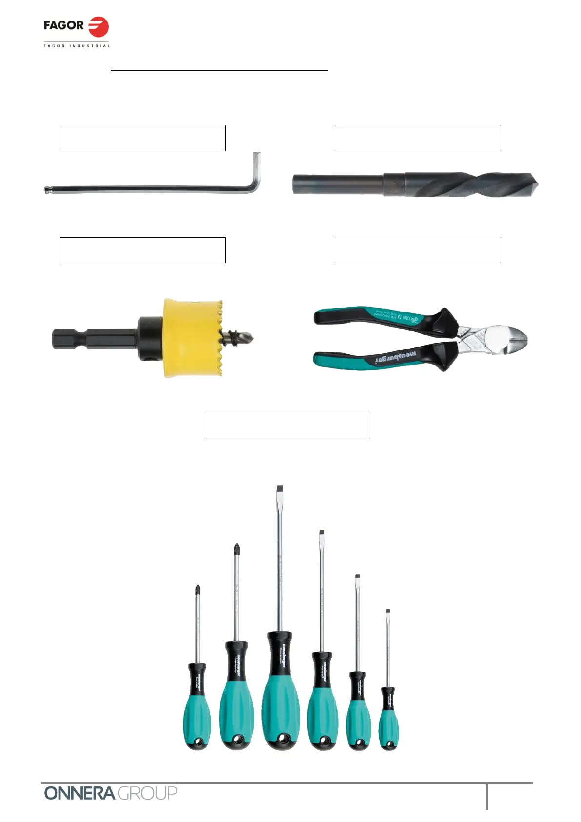 Fagor TP2 Series - Tools Required for the Installation