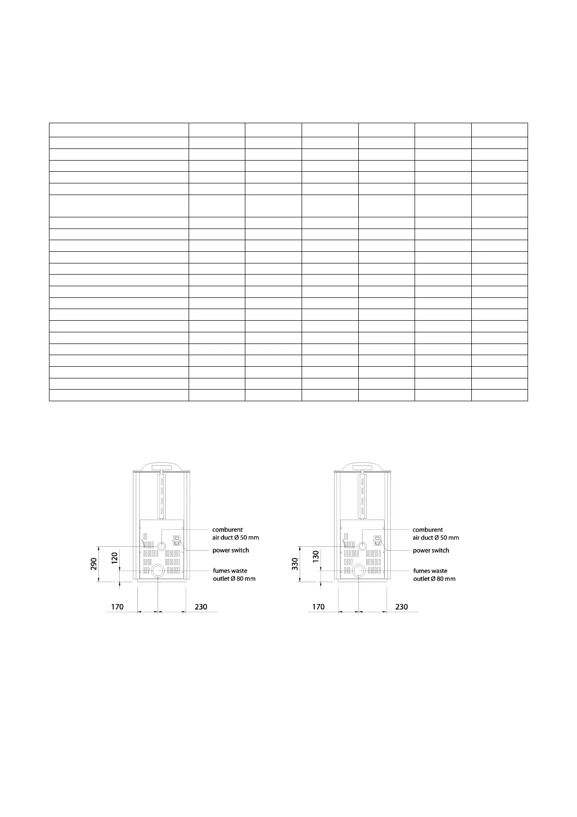 Fumes waste outlet diameter