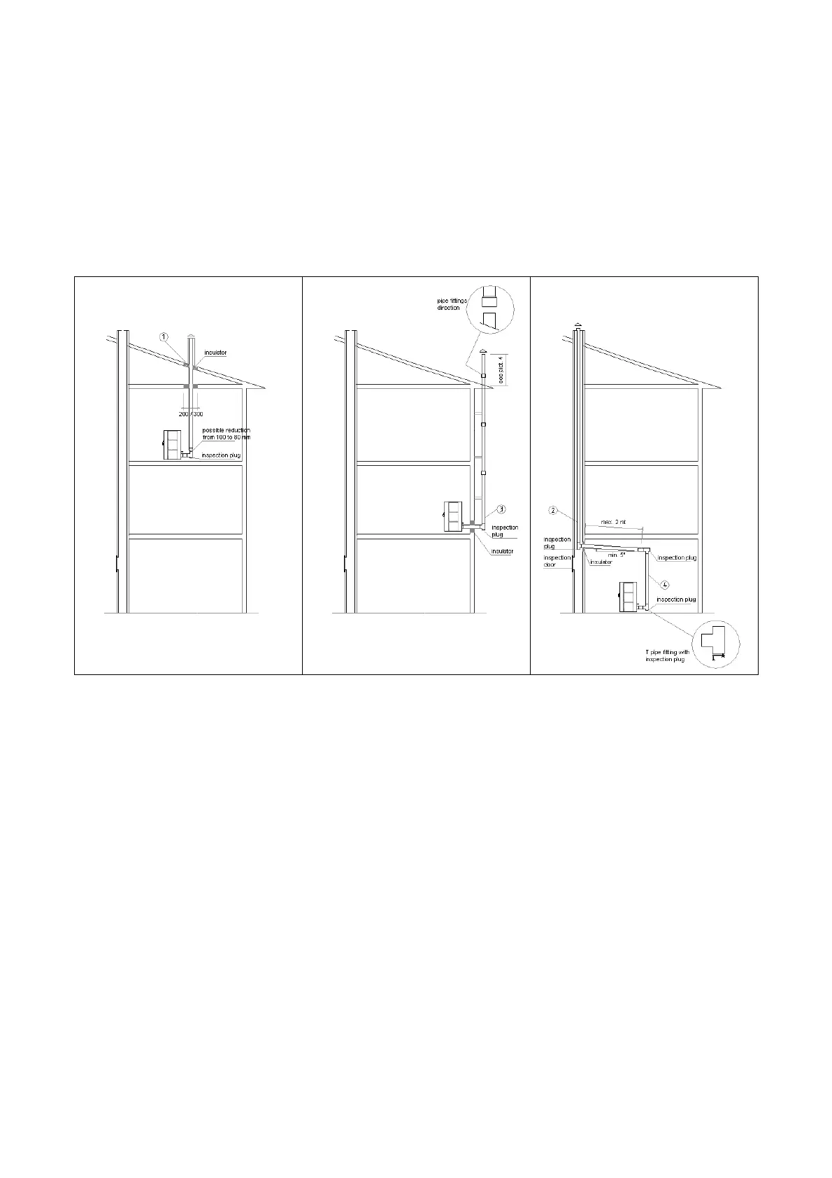 3) External chimney flue made of insulated stainless steel pipes with double wall, diameter 8-10 cm, well