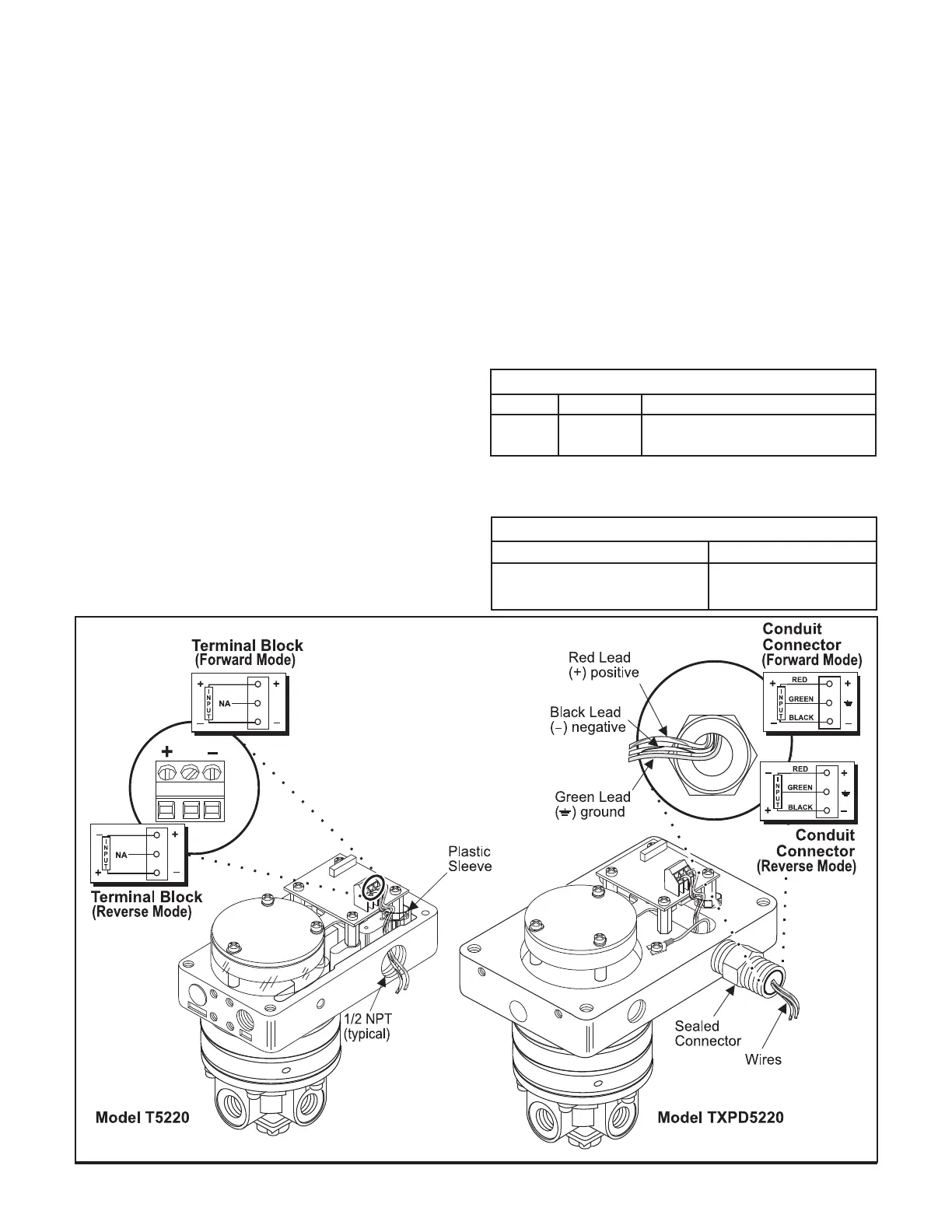 NOTE: The T5220 & TXPD5220 should be wired in