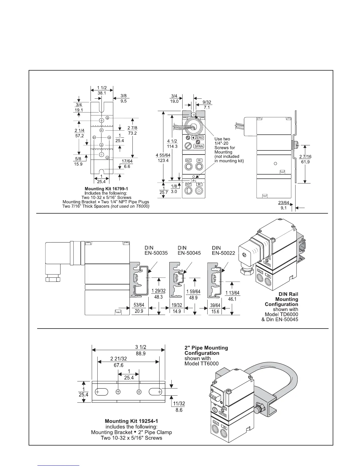 The Model T6000 is supplied with a DIN Rail Mounting Kit