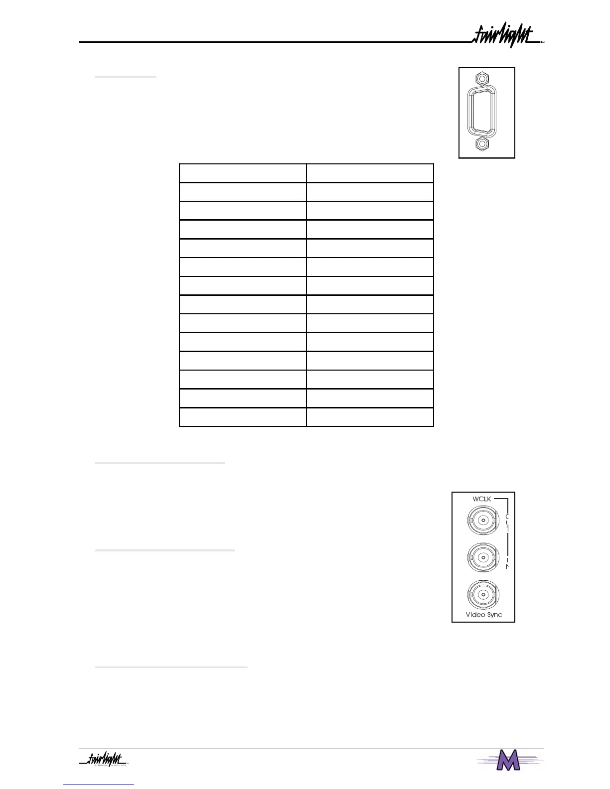 Fairlight Merlin - A16 Vga; A17 Video Sync - in; A18 Word Clock - in; A19 Word Clock - out