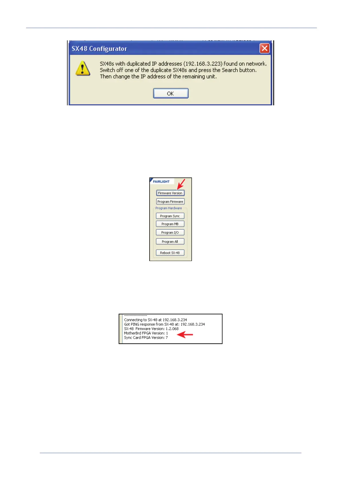Click on the Firmware Version button to read the current firmware versions for any particular SX-48