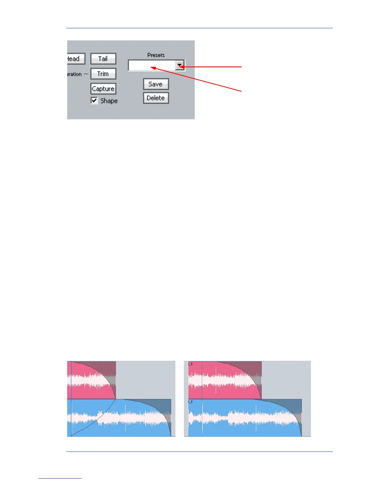 Clip, Head or Tail button to capture the fade length and shape from the current clip.