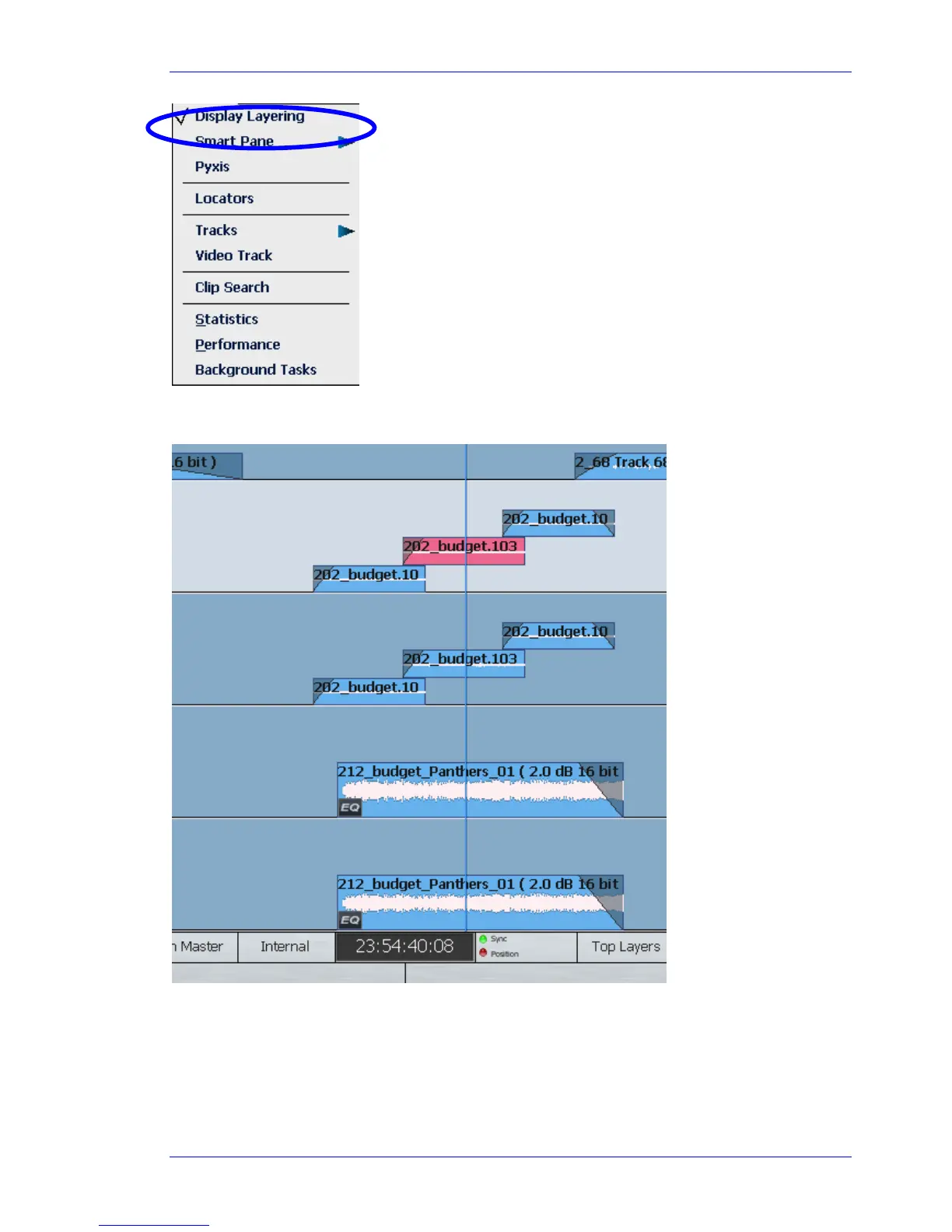 The layers of clips are shown on all tracks, with the clips becoming thinner as needed to fit the available