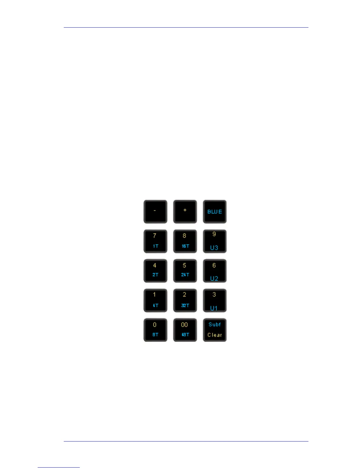 holding down the BLUE key, and pressing one of the numeric keys labeled