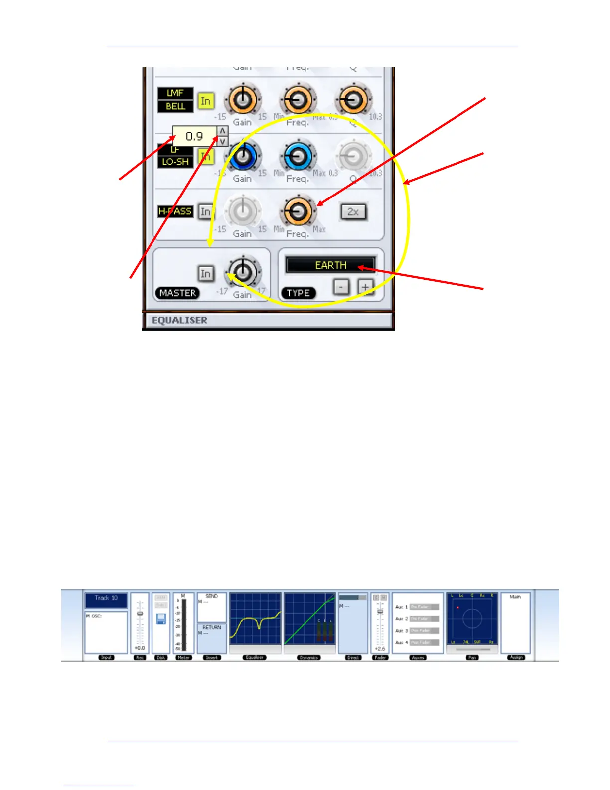 Right clicking in the EQ, DYN or PAN sections causes display of the Zoom panels. See below.