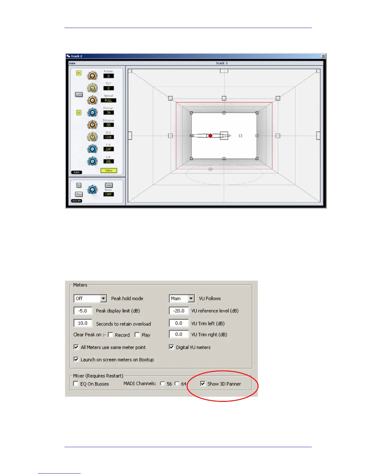 The 3D panner provides extra dimensions of panning such Up-Down, Distance and Tilt. These are