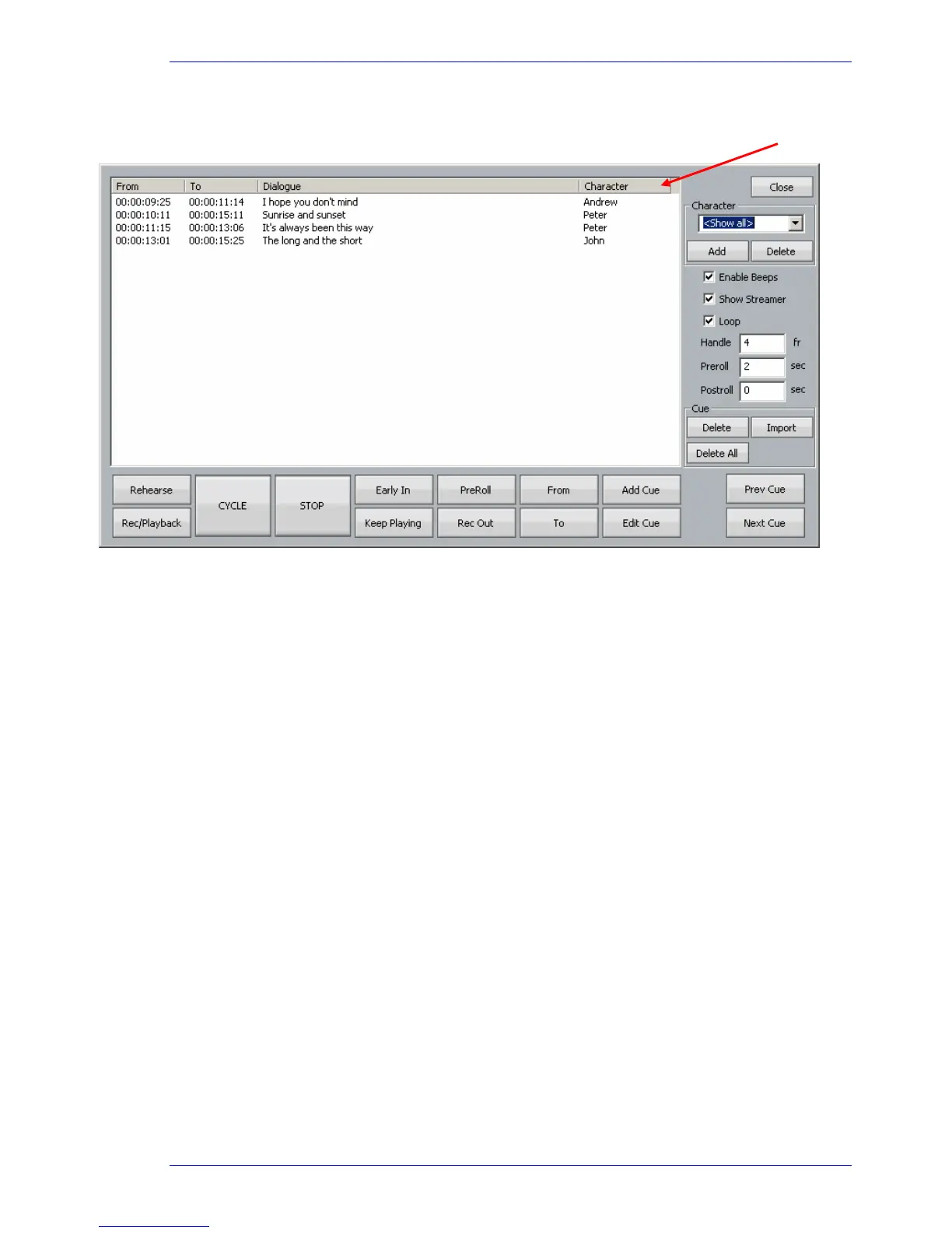 To sort the list by character, click the Character tab at the top of the ADR list box.