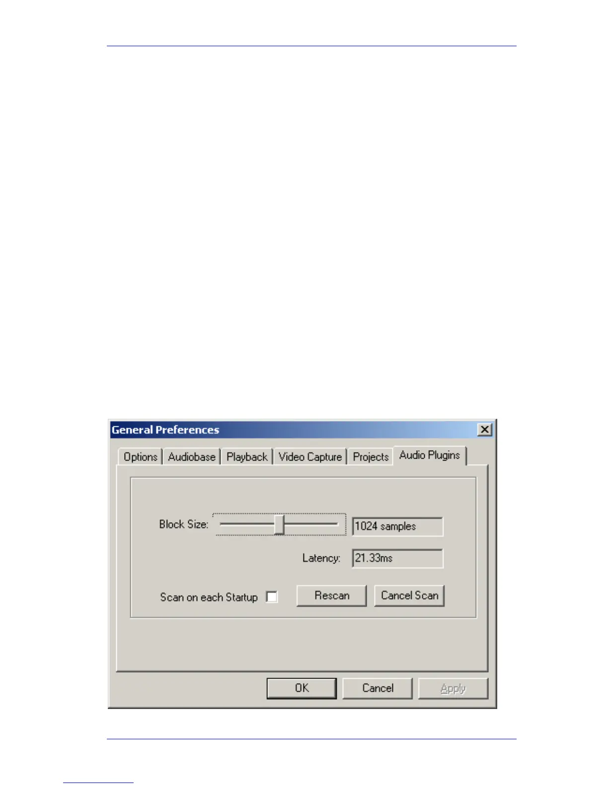 To set block size, click Setup General Preferences, and click the Audio Plug-ins tab.