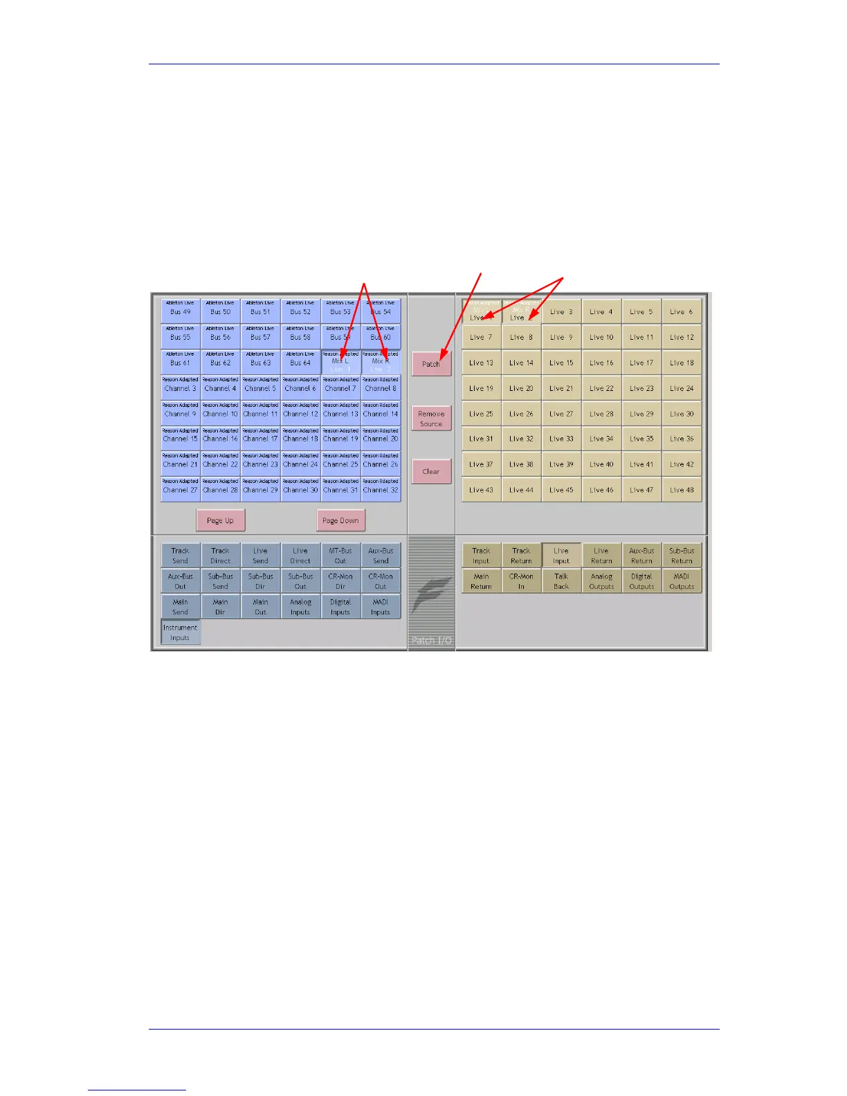 Step 4 Select Track, Live or other patch destinations located on the lower right hand side of the