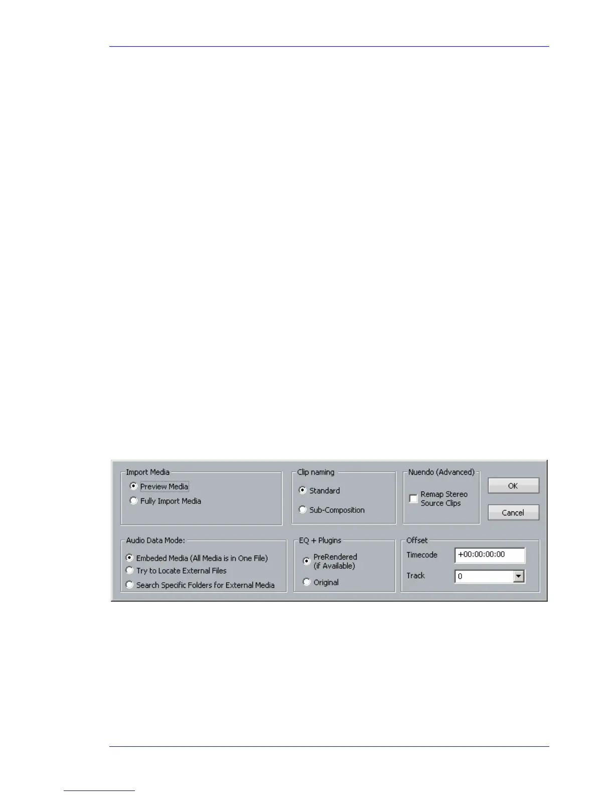 “Preview Media” references the audio files from the omf – this may cause slowdowns on large projects