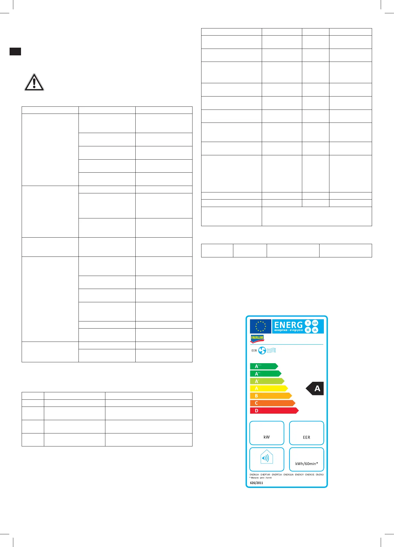 Hinweis: Die Bemessungs-Kühlleistung ist unter den nachfolgenden