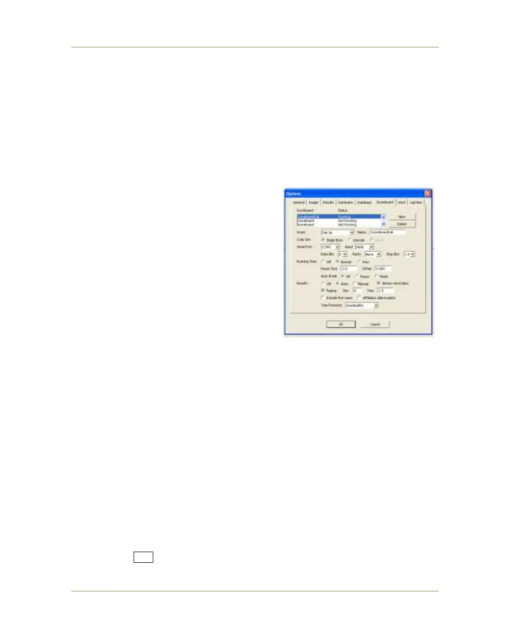 1. The Options box appears, as shown at right. Choose the Scoreboards tab,