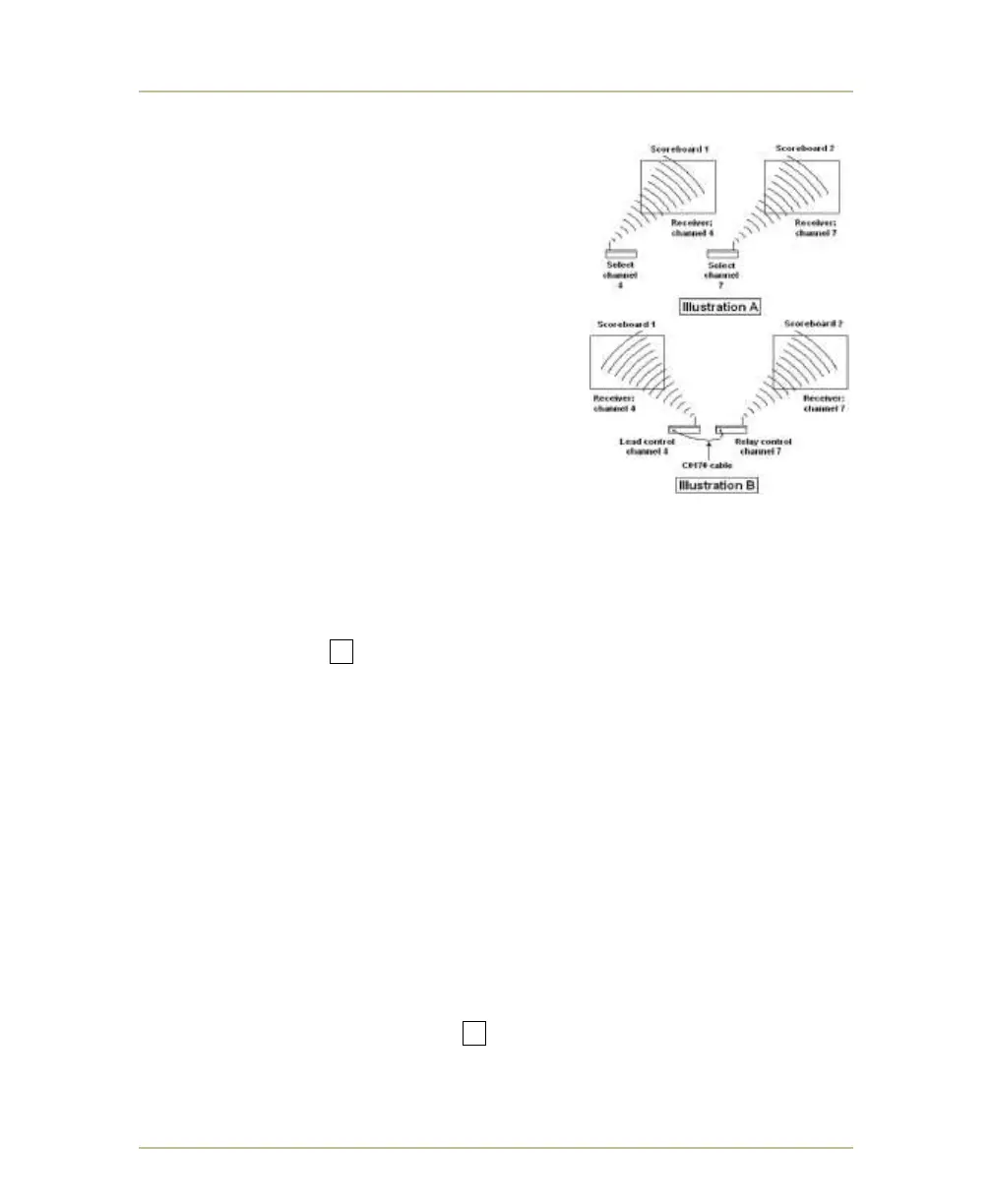 over its own radio channel to the receiving devices. All control of the scoreboards