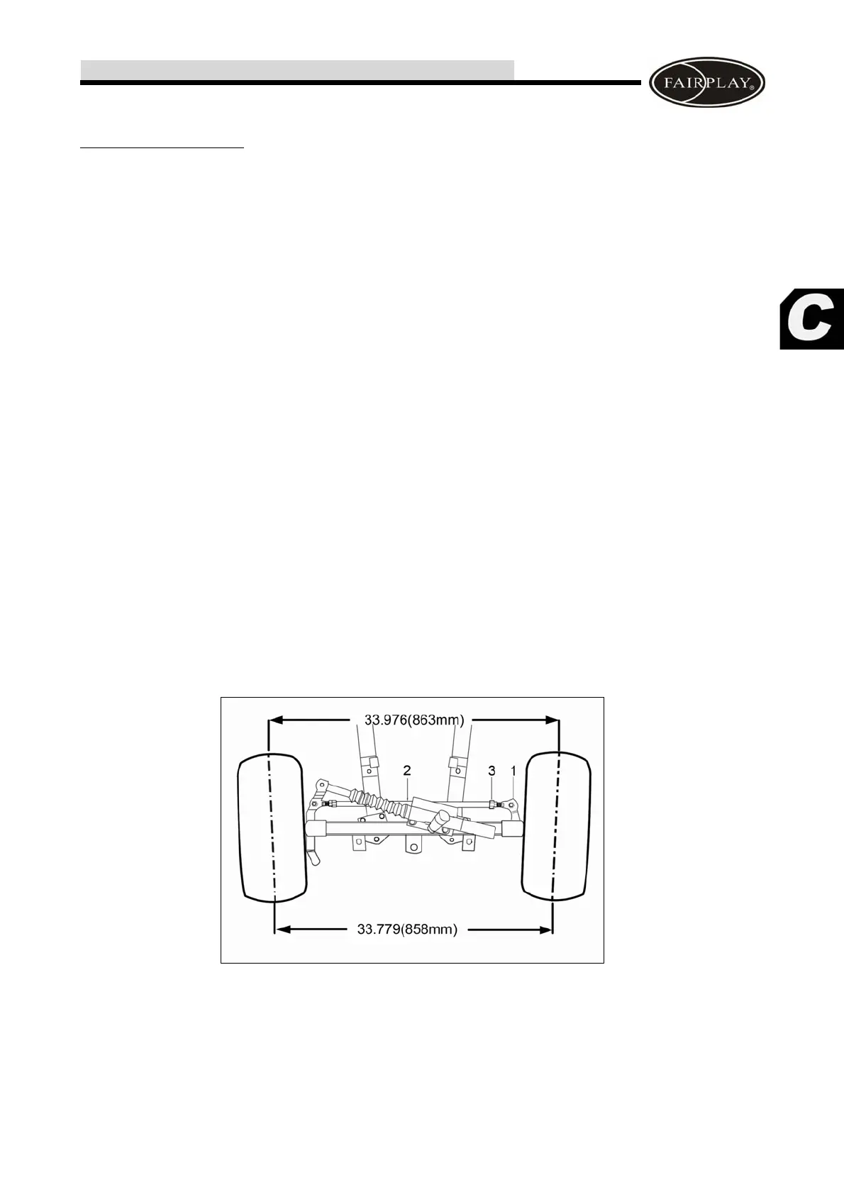 should be 33 1/2" (85 centimetres). To adjust the wheel alignment, rotate the steering wheel leftward first