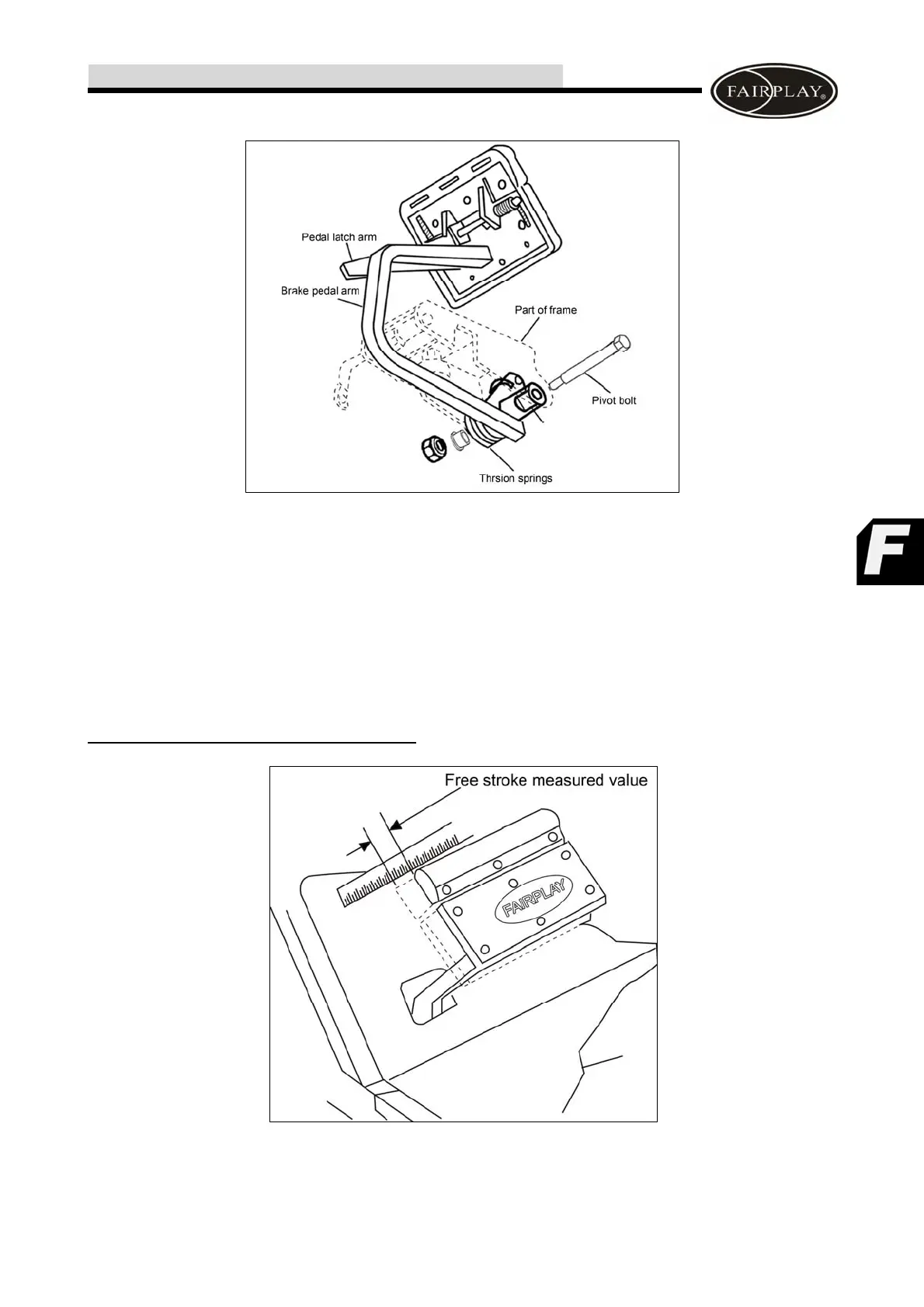 The correct brake pedal free travel should be set to 1.18- 1.38 inches (3-3.5 centimetres) (Ref Fig. F9).