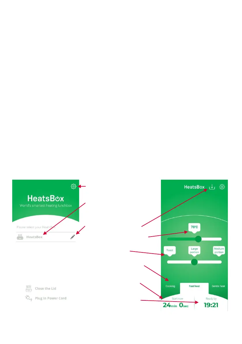 • Start het verwarmingsproces door het veld in de app te selecteren dat de