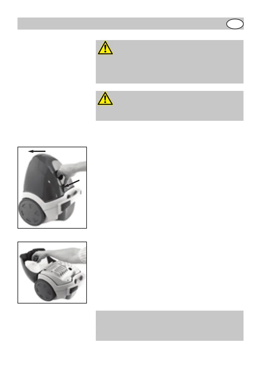 dentro Entonces extraiga la bolsa de polvo llena y dese-