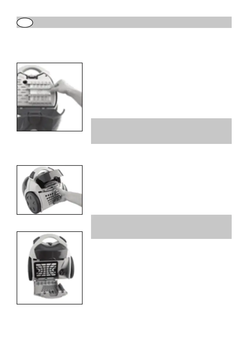 1. Abre la tapa de compartimiento de polvo.