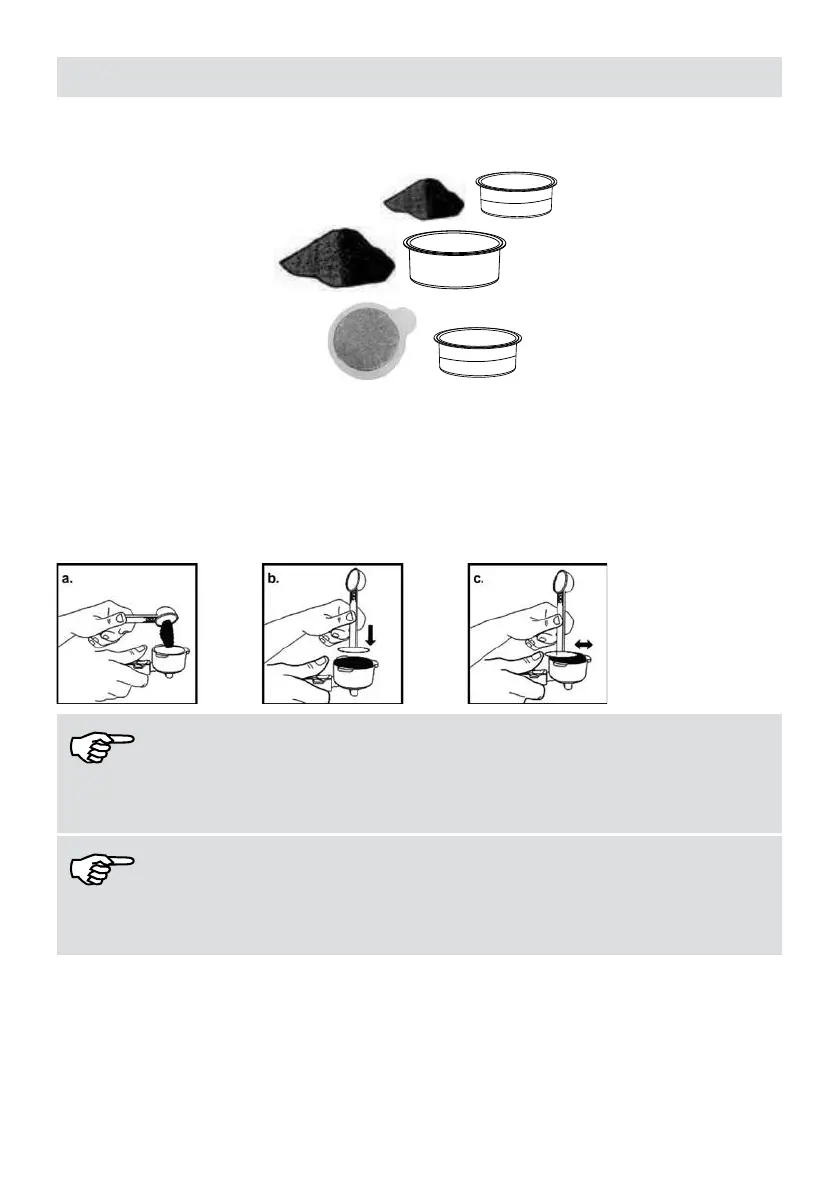 For a good Espresso, place the lter and coffee in the lter holder. Apply a pressure of 15