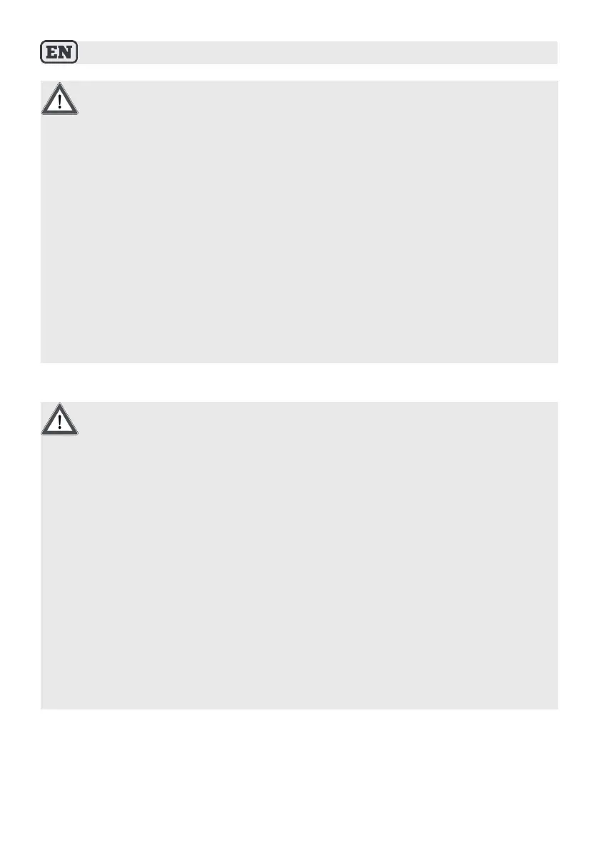 • Cleaning and user maintenance should not be carried out