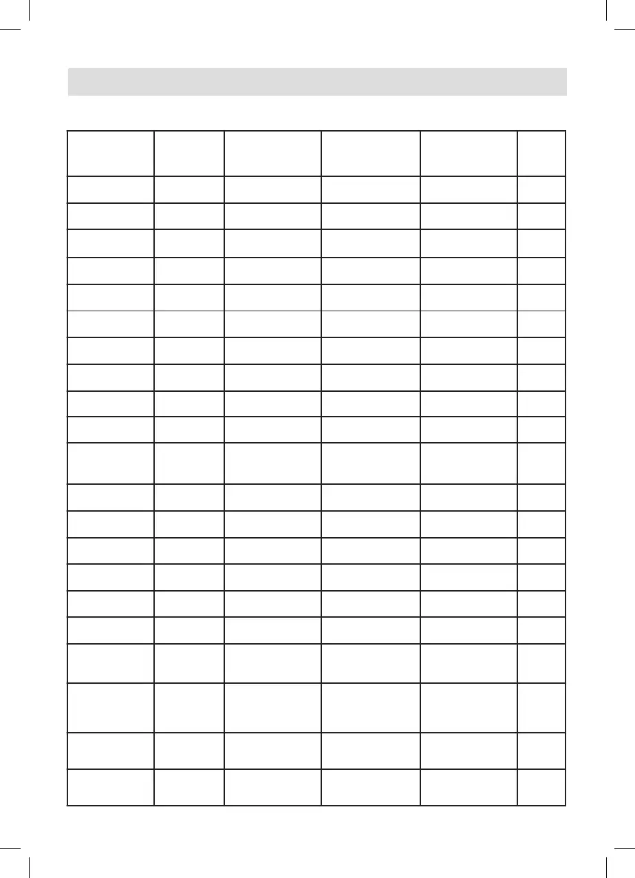 Tabelle der Kochprogramme (Werkseinstellungen)