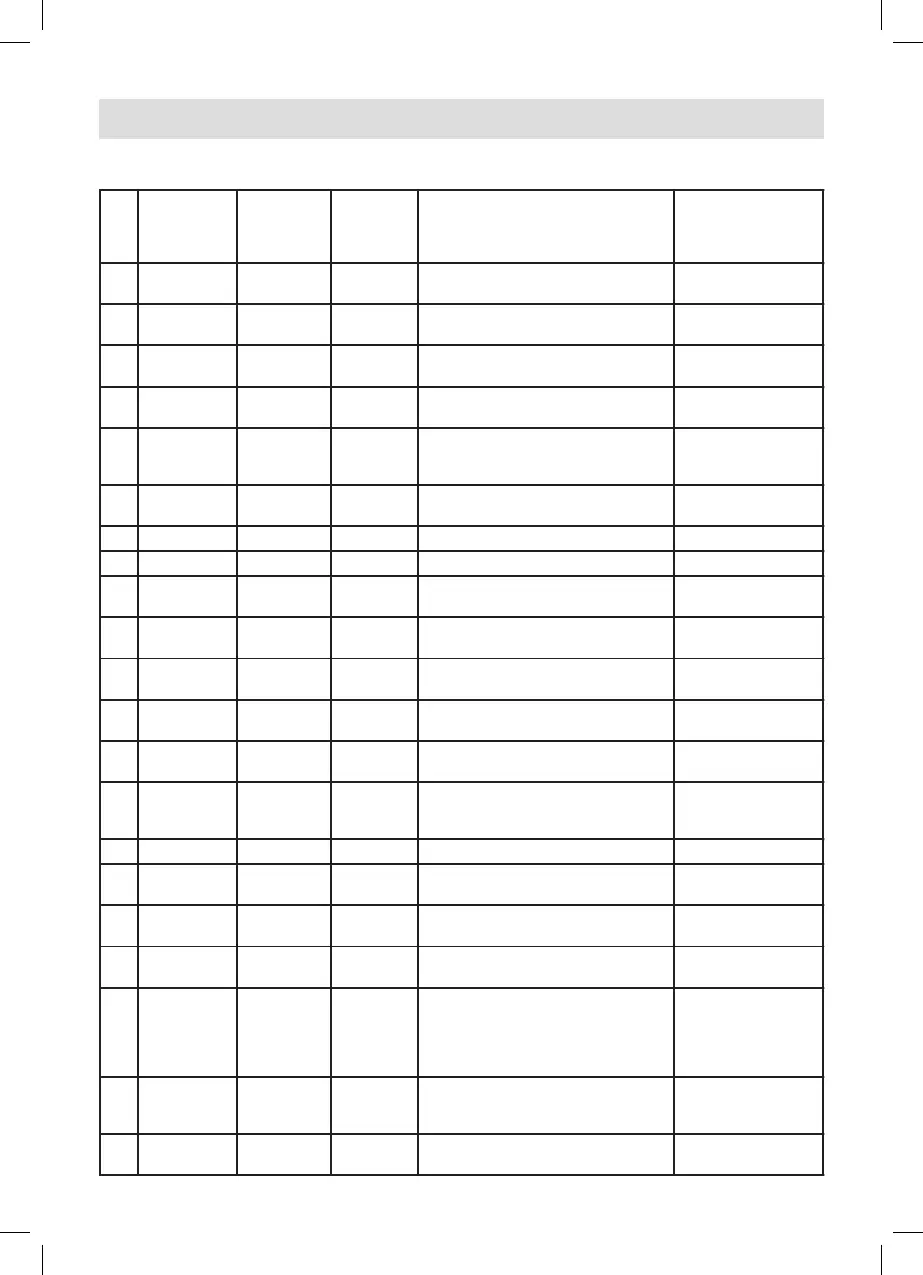 Pişirme Programları Tablosu (Fabrika ayarları)