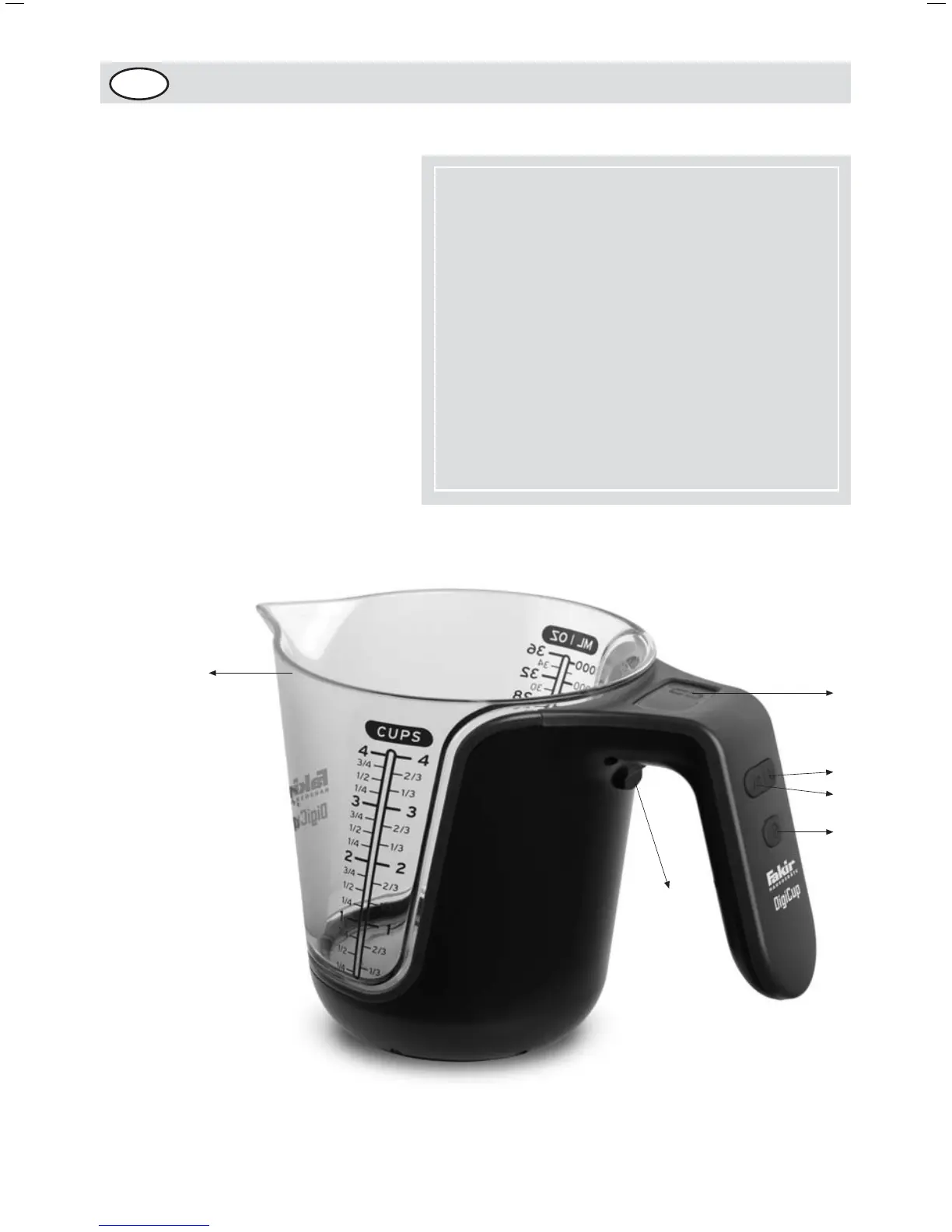 Volume precisioni: 1/8 cups, 1/8 fl oz, 1 mL