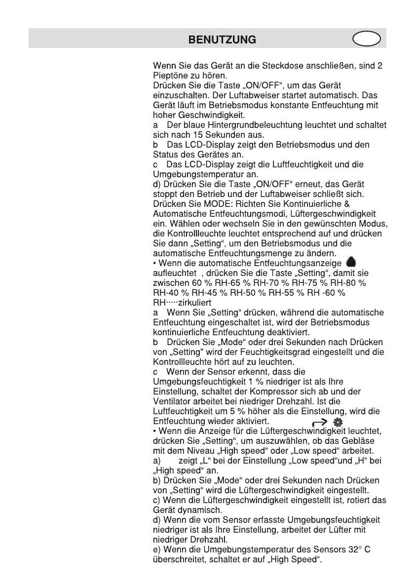 Fakir DRYWELL - Bedienung der Tastenfelder